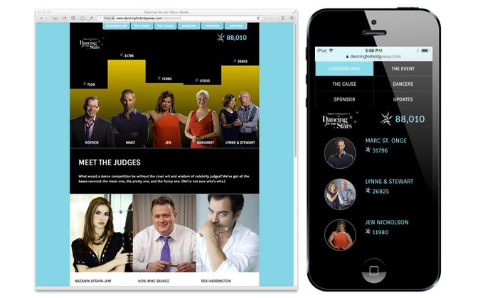 DancingForBridgeway.com is where supporters go to make online donations, track their favourite dancers' progress, browse photos, receive updates from the event organizers, and view a real-time leaderboard for every dancer in the competition. With a responsive design, this is made possible from any device ranging from smartphones to desktop PCs.