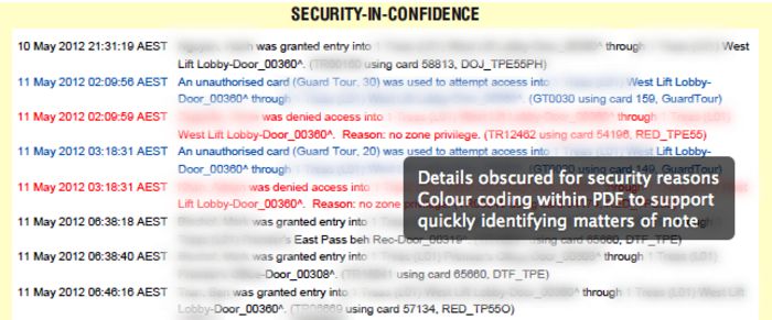 The process makes routine reports extremely simple to schedule at the required intervals, with copies distributed to those that need them, when they want them. The structure of the reports is much cleaner than is possible with the native security software, and using the SecWeb portal to create the reports eliminates the need for training operators on the native software.