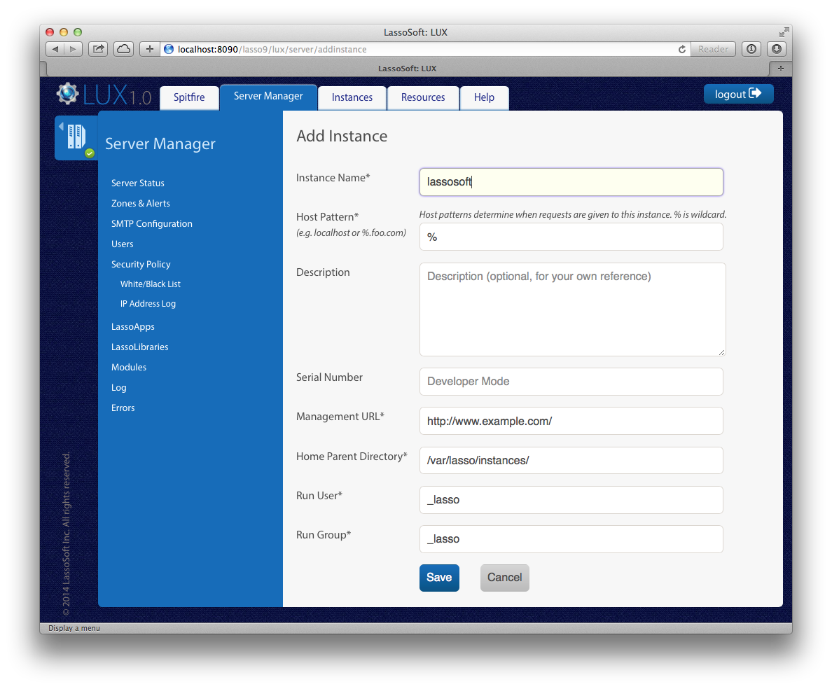 After running the installer, open http://server-domain.name:8090/lasso9/lux in a browser to complete the installation.